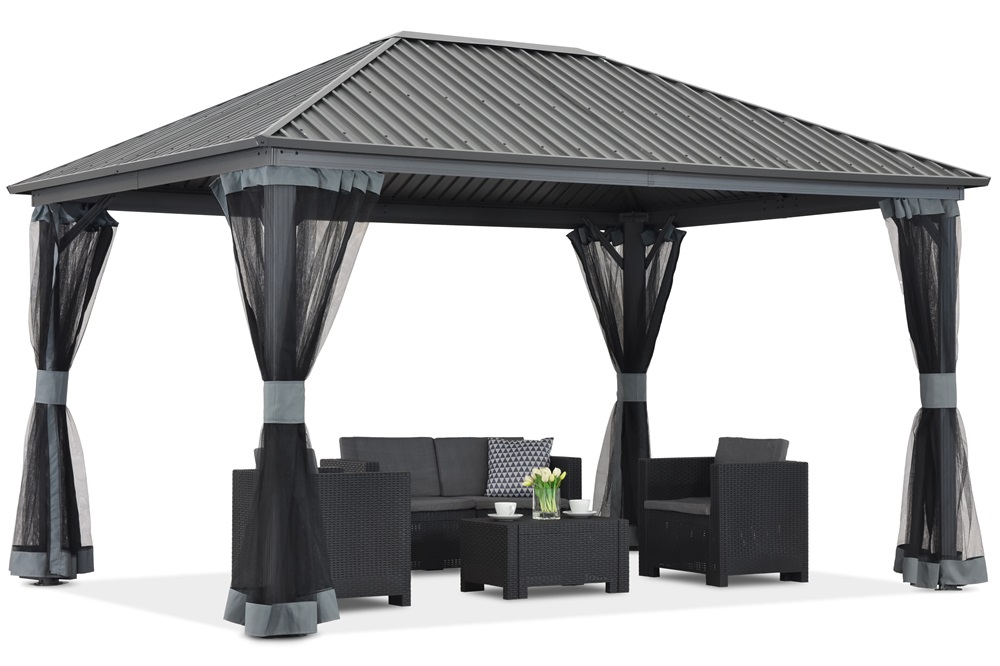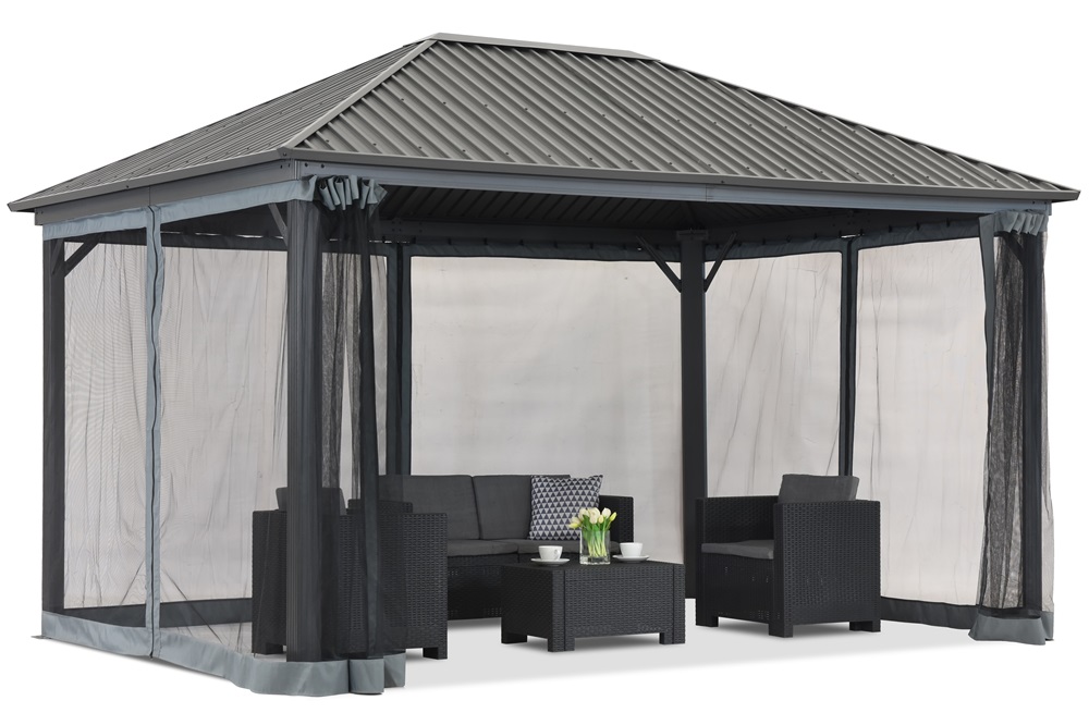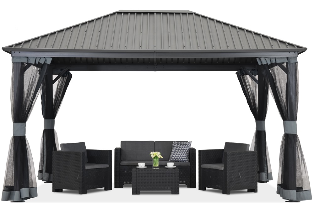 Elegantní a funkční řešení, které je ideální pro relaxaci a venkovní setkání. Pavilon Sardinie v antracitové barvě se stane novým oblíbeným místem na zahradě.