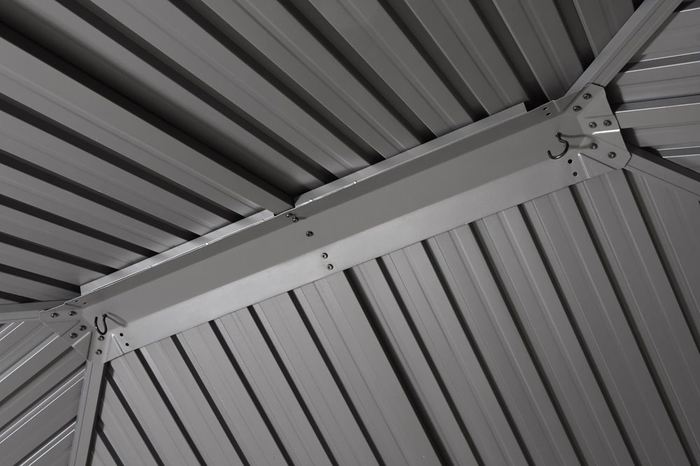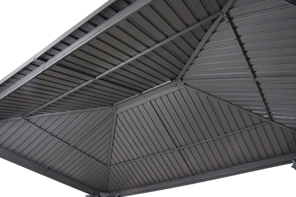 - Odolná střecha efektivně chrání před deštěm, což zajišťuje pohodlné používání pavilonu i za špatných povětrnostních podmínek.